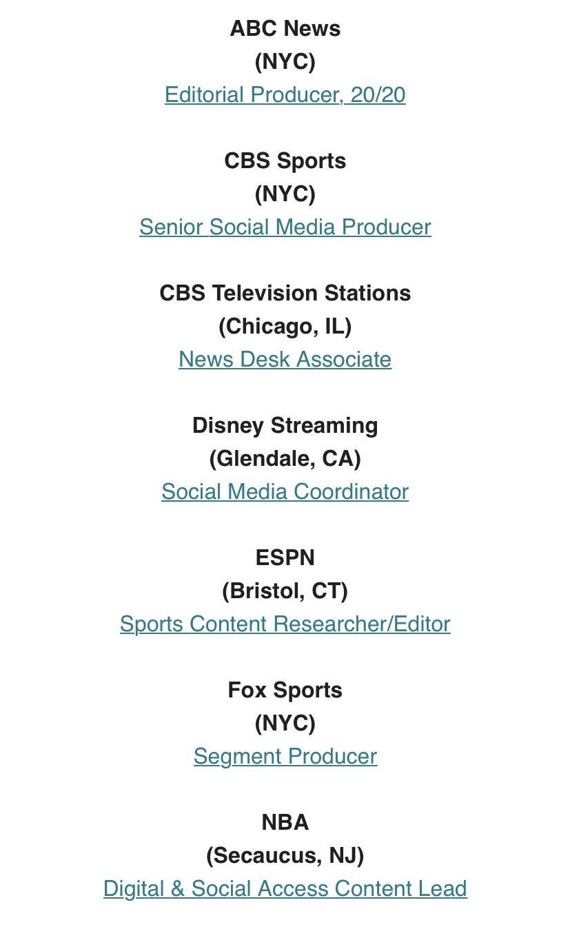 Meojobs On Twitter Breaking Today S List Of 190 Newly Available Media Jobs Includes Content Producer Nbc10boston Editorial Producer Abc2020 Reporter Apple Wsj Segment Producer Foxsports Sports Content Researcher Espn Supervising Editor